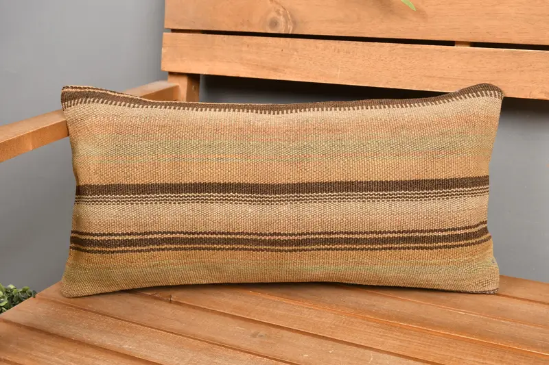 Almohada de tiro de lino a rayas naranja y marrón, almohada rectangular vintage de 10x20