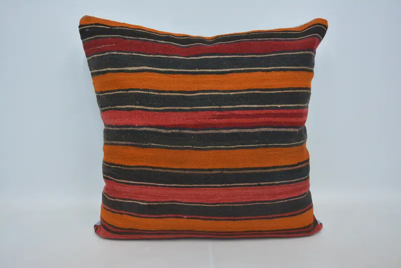 Almohada de tiro a rayas rojas y naranjas, cojín bordado 32x32