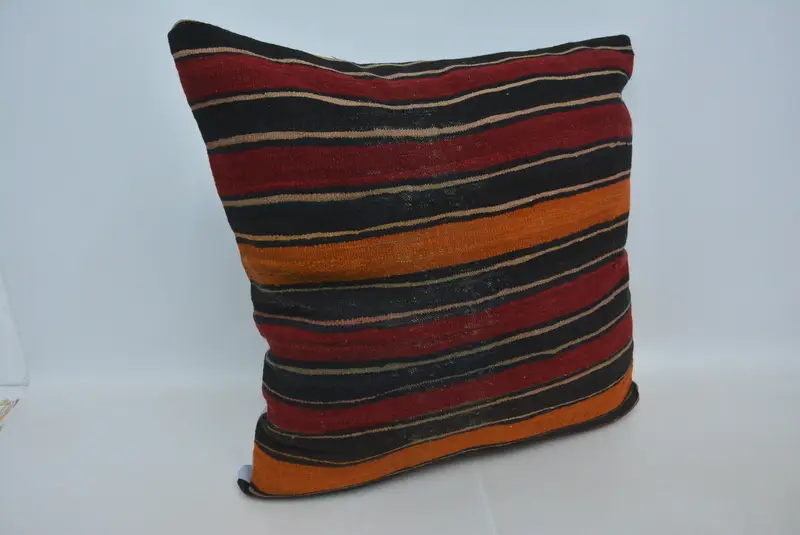 Almohada de tiro a rayas rojas y naranjas, cubierta de cáñamo bordada de 32x32