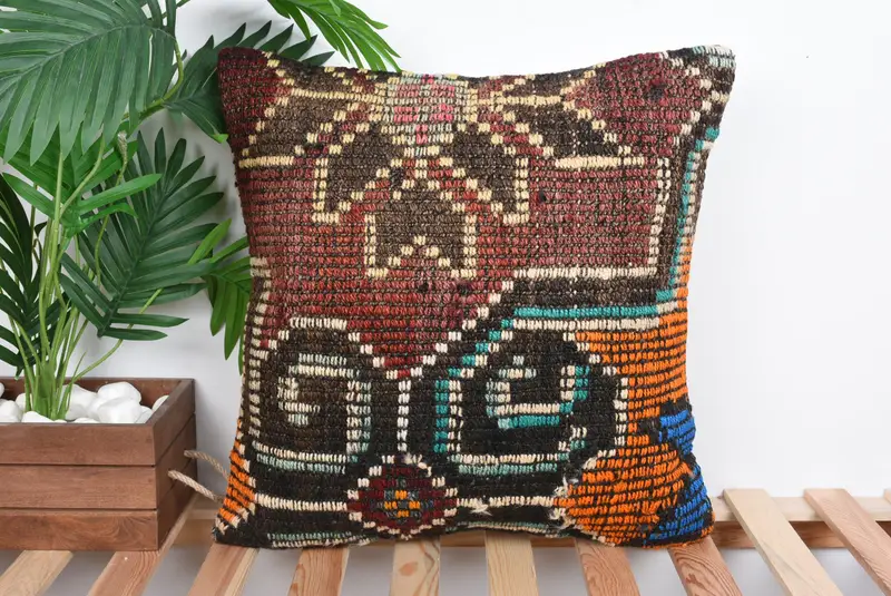 Almohada de lino rojo con patrón geométrico, cojín vintage con cremallera