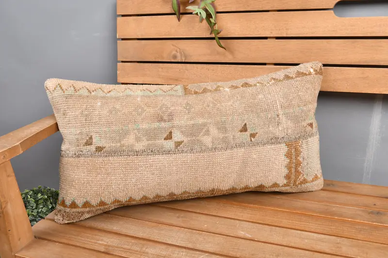 Almohada de lanzamiento de patchwork beige y marrón, cojín hecho a mano de 12x24