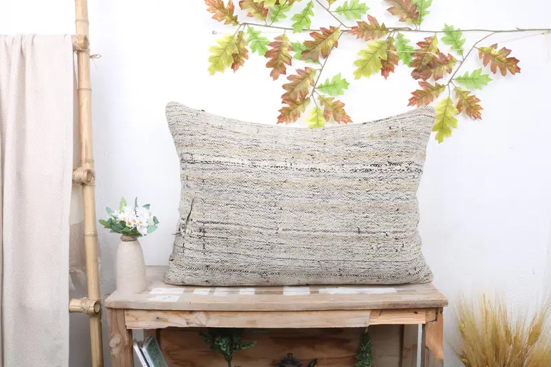 Almohada de tiro a rayas beige y marrón, cojín bordado hecho a mano
