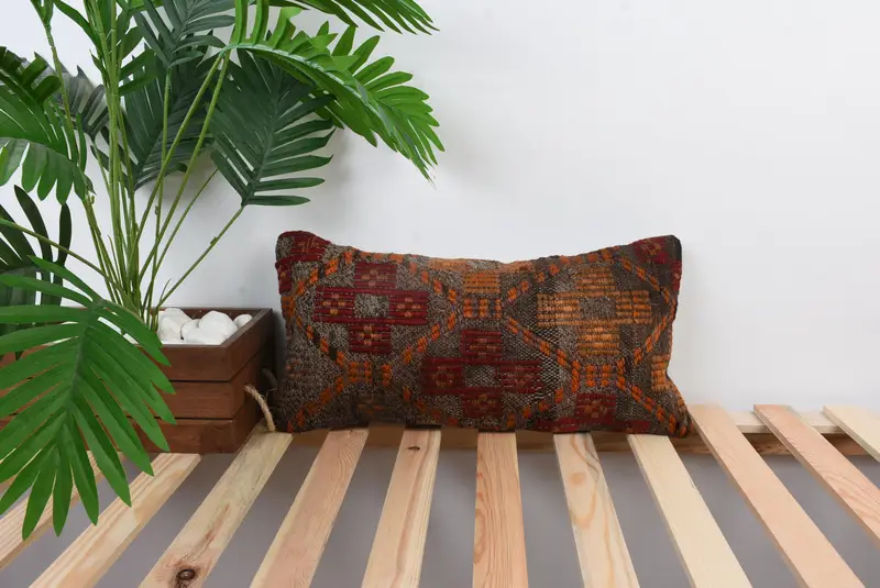 Almohada de tiro bordada del suroeste rojo, cojín de lino hecho a mano