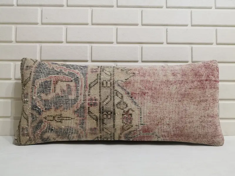 Almohada de lanzamiento de lana geométrica roja y gris, almohada rectangular de 12x28 pulgadas