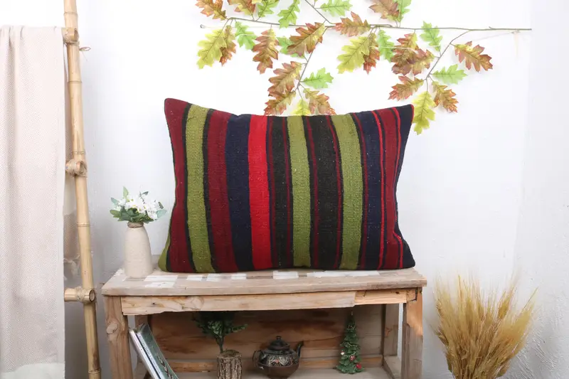 Almohada de tiro a rayas hecha a mano, cojín bordado 20x28