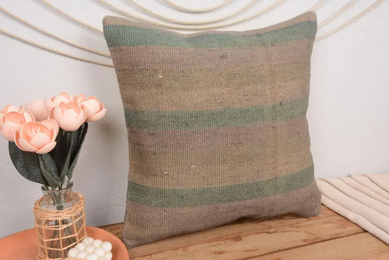 Almohada de tiro de rayas marrones, almohada vintage bordada de 20x20
