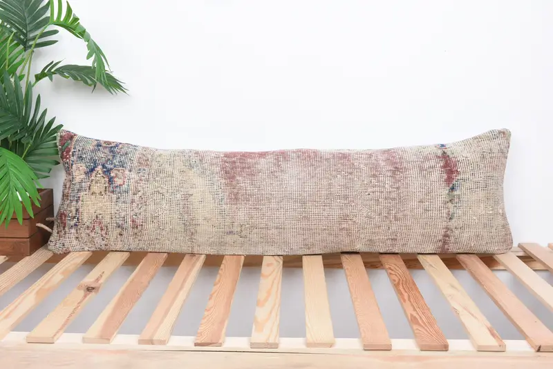 Almohada de tiro bordada azul y marrón, cojín vintage hecho a mano