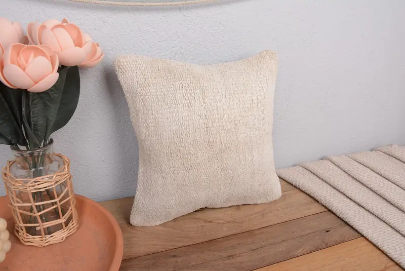 Almohada bordada del suroeste beige, almohada de tiro vintage 12x12
