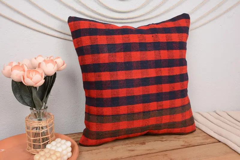 Almohada de tiro a rayas rojas y marrones, cojín vintage de 20x20