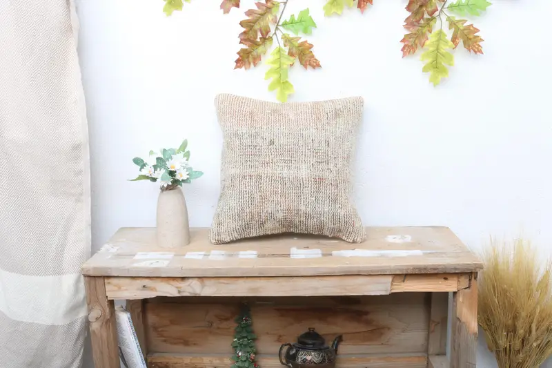Almohada de lanzamiento Kilim del suroeste beige, cojín bordado 14x14