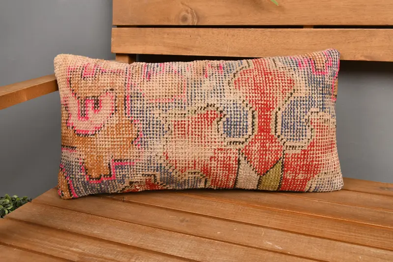 Almohada de tiro bordada roja y bronce, cojín hecho a mano de 10x20