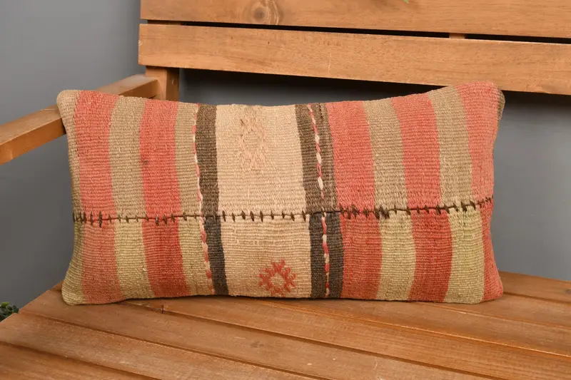 Almohada de tiro de rayas rojas y beige, cojín hecho a mano de 10x20