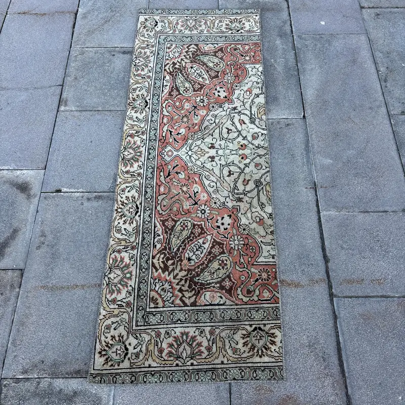 Alfombra verde 1,7x4,8 ft, estampado botánico y detalles en rojo