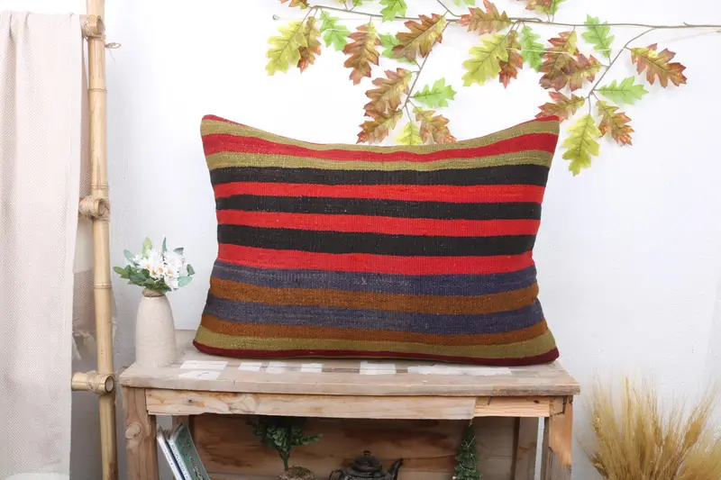 Almohada de tiro a rayas hecha a mano con encanto vintage, cojín bordado