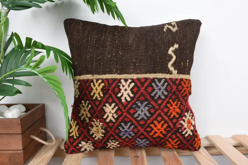 Almohada de lanzamiento de patchwork rojo y bronce, almohada vintage bordada de 16x16