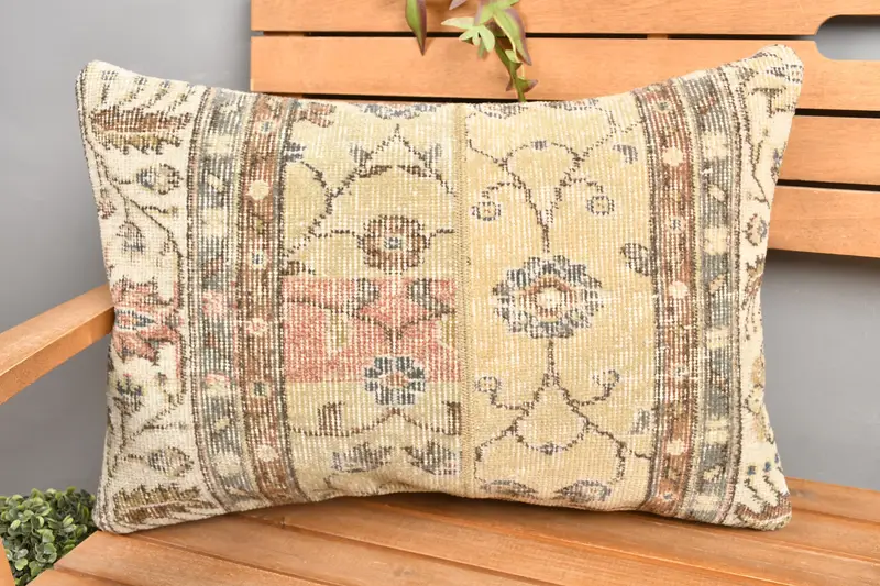 Almohada de lanzamiento de patchwork beige y verde, cojín bordado 24x16