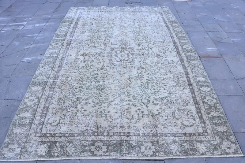 Elegante alfombra oriental marrón, 6x9 pies con detalles en verde