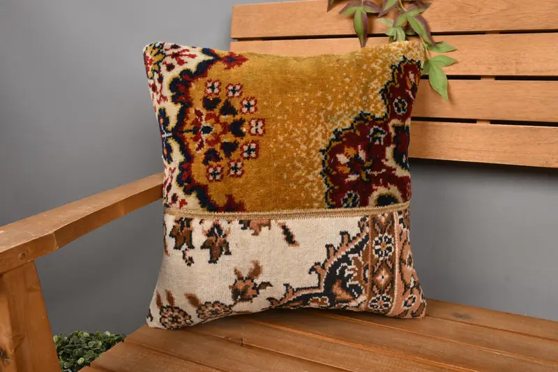 Almohada de lanzamiento de patchwork naranja y beige, almohada de decoración vintage hecha a mano