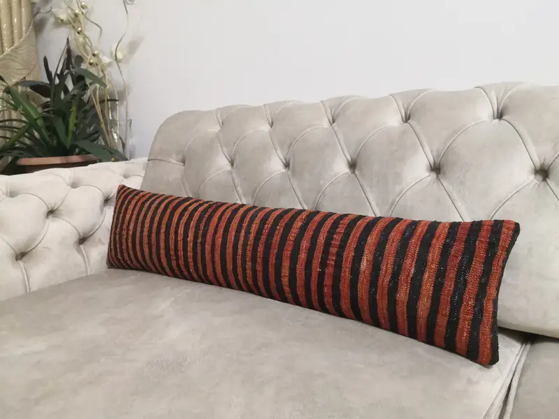 Almohada de lanzamiento de lana bordada hecha a mano, almohada rectangular a rayas vintage