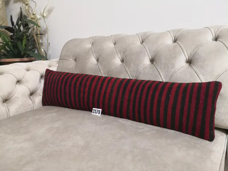 Almohada de lanzamiento de lana a rayas hecha a mano, almohada decorativa rectangular roja y negra