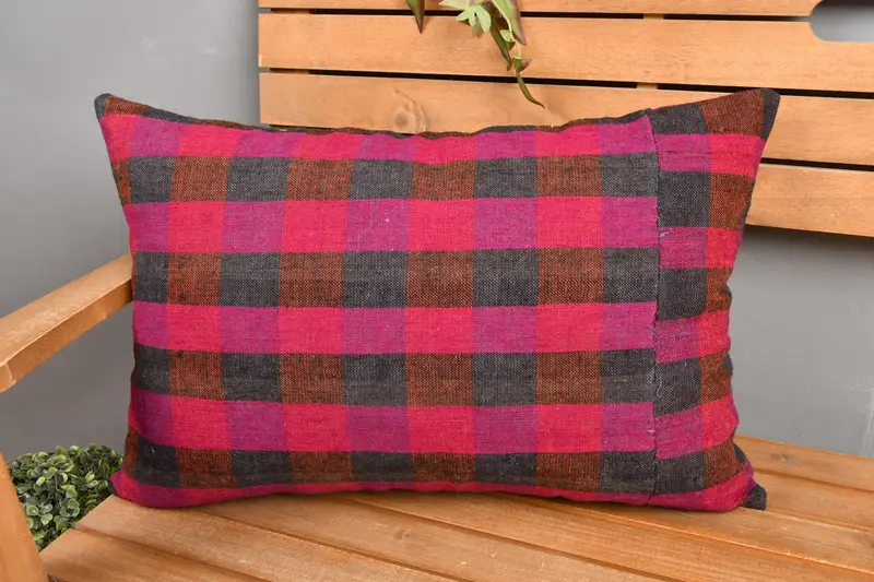 Almohada bordada hecha a mano, almohada de tiro a rayas rosa y marrón