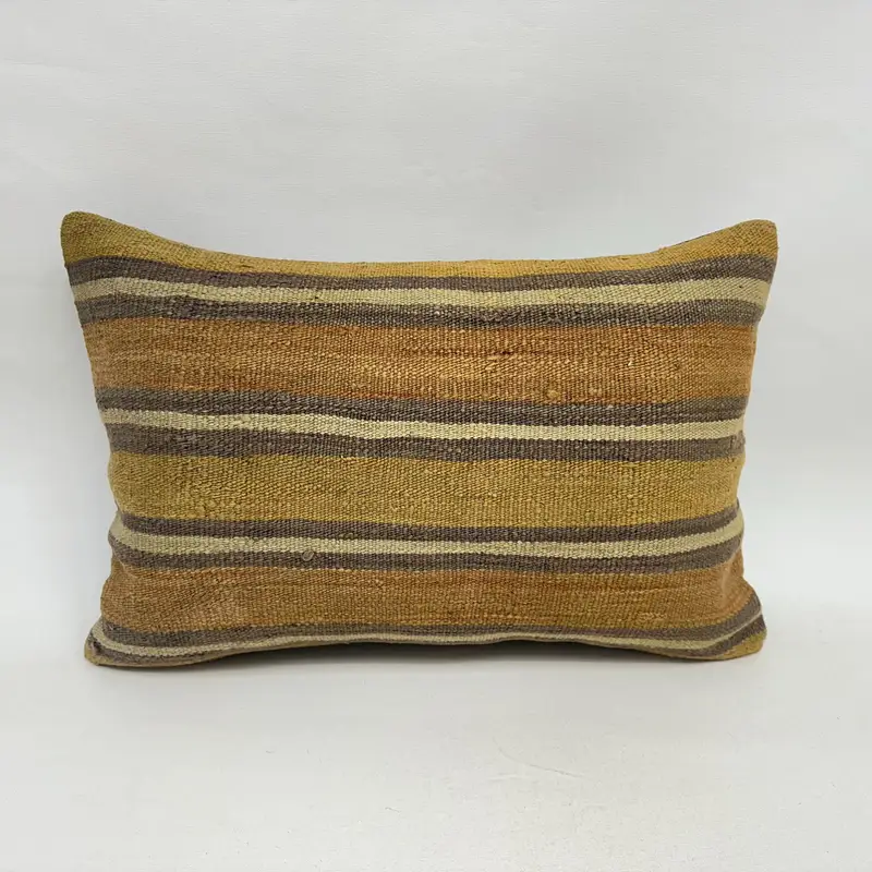 Almohada de tiro a rayas beige y marrón, cojín rectangular hecho a mano