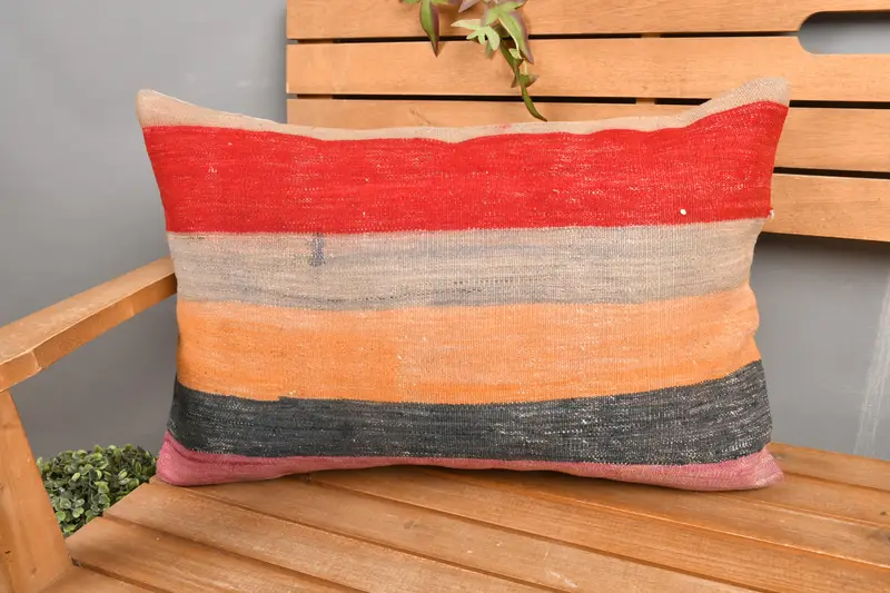 Almohada de rayas rojas y bronce, almohada de lanzamiento bordada de 16x24