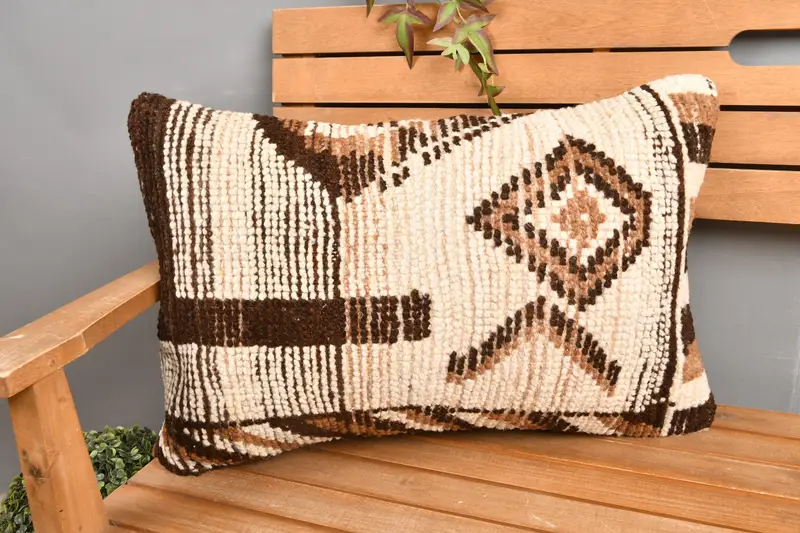 Almohada bordada geométrica beige y marrón, almohada de lanzamiento versátil de 16x24