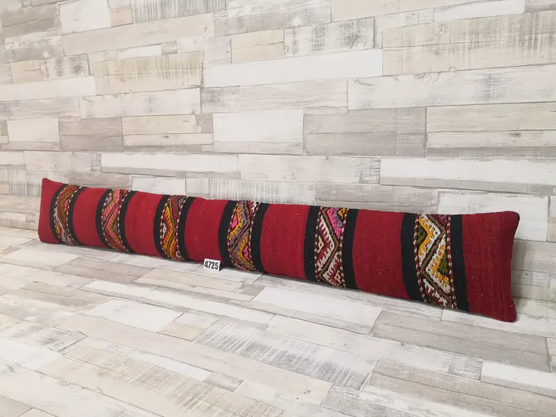 Almohada de lanzamiento de lana a rayas hecha a mano, almohada rectangular bordada vintage