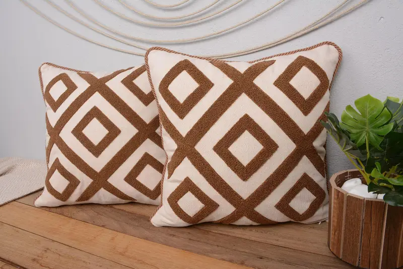 Almohada de lanzamiento bordada del suroeste, cojín cuadrado vintage 16x16