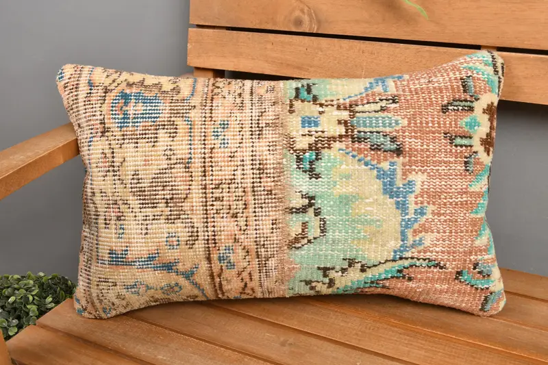 Almohada de tiro de lino floral beige y verde, almohada rectangular vintage