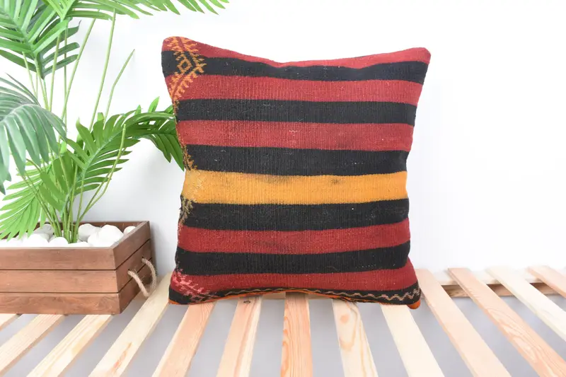 Almohada de tiro a rayas rojas y negras, cojín bordado 20x20