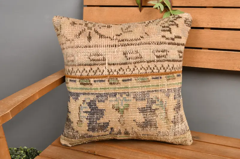 Almohada de lanzamiento floral beige y marrón bordada, cojín hecho a mano de 16x16