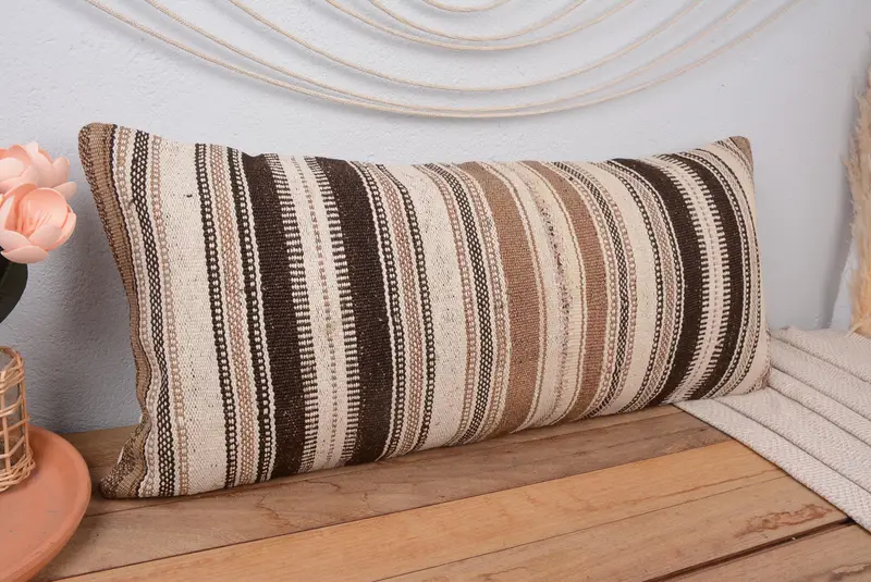 Almohada de lanzamiento de patchwork bordado beige y marrón, cojín vintage hecho a mano