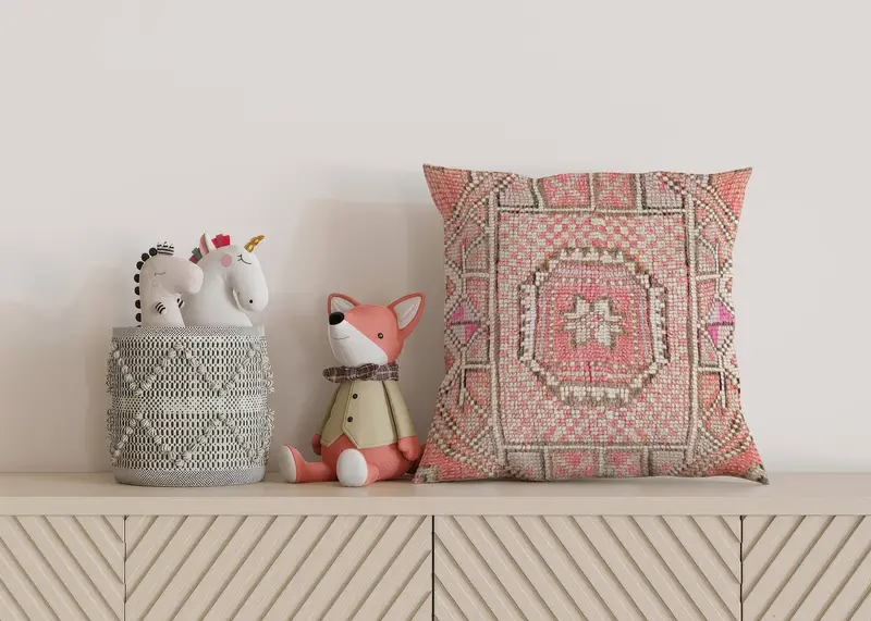 Almohada de tiro bordada del suroeste hecha a mano, almohada de lino vintage rojo y beige