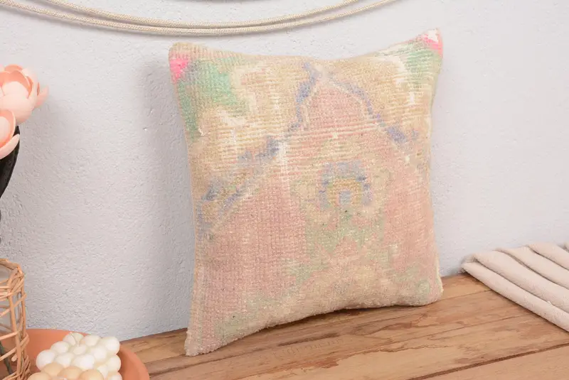 Almohada de tiro floral bordada, cojín vintage rosa y morado