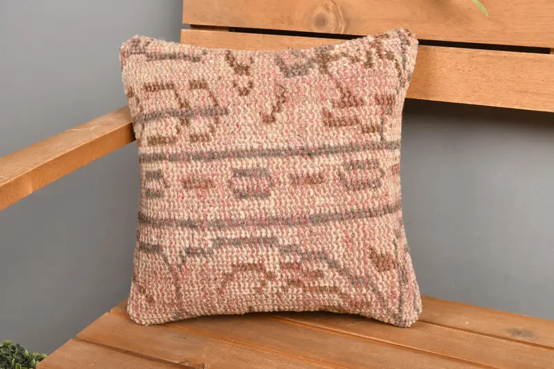 Almohada de tiro Kilim del suroeste beige, almohada vintage bordada de 12x12