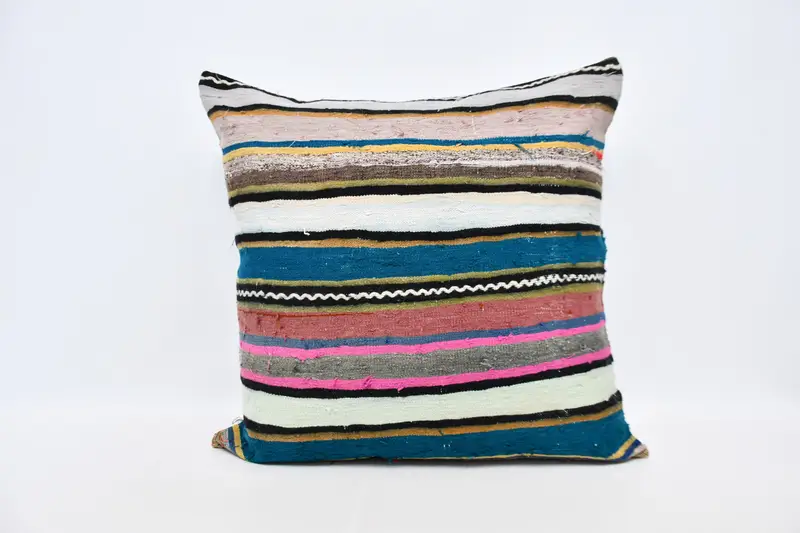 Almohada de tiro a rayas hecha a mano, almohada vintage bordada de 32x32