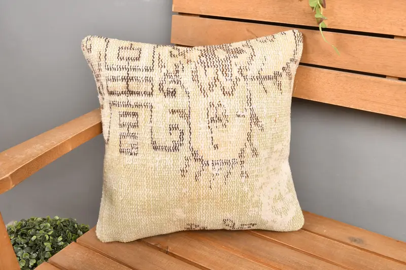 Almohada de lanzamiento floral beige y marrón bordada, cojín de lino versátil 14x14