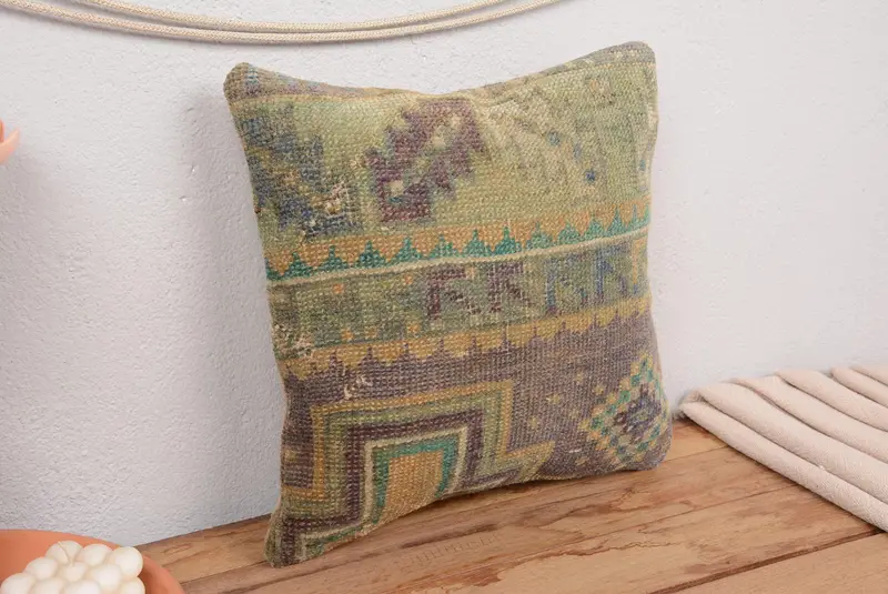 Almohada de tiro bordada hecha a mano, cojín vintage verde y morado