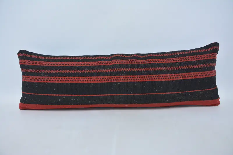 Almohada de tiro de cáñamo a rayas rojas y marrones, cojín bordado vintage