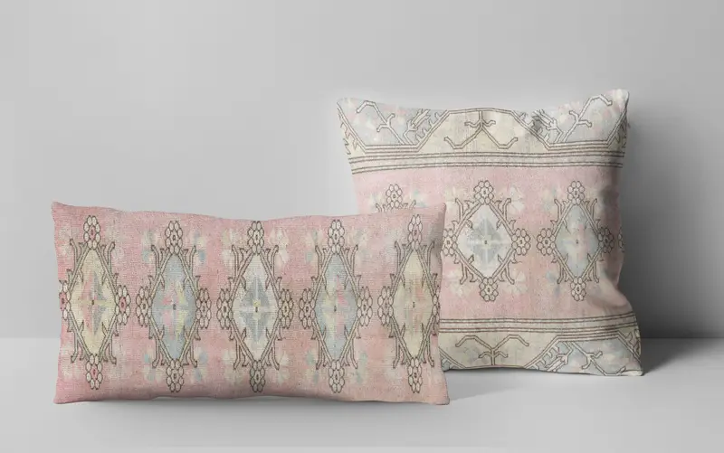 Almohada de tiro rosa bordada hecha a mano, almohada rectangular del suroeste