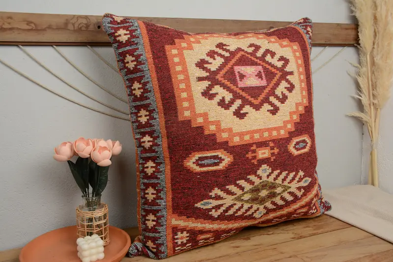 Almohada de lanzamiento naranja del suroeste, almohada vintage bordada de 32x32