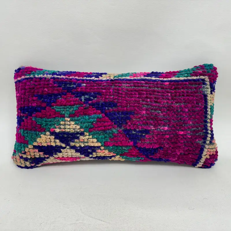 Almohada púrpura del suroeste con detalles en bronce, almohada de tiro de lino hecha a mano