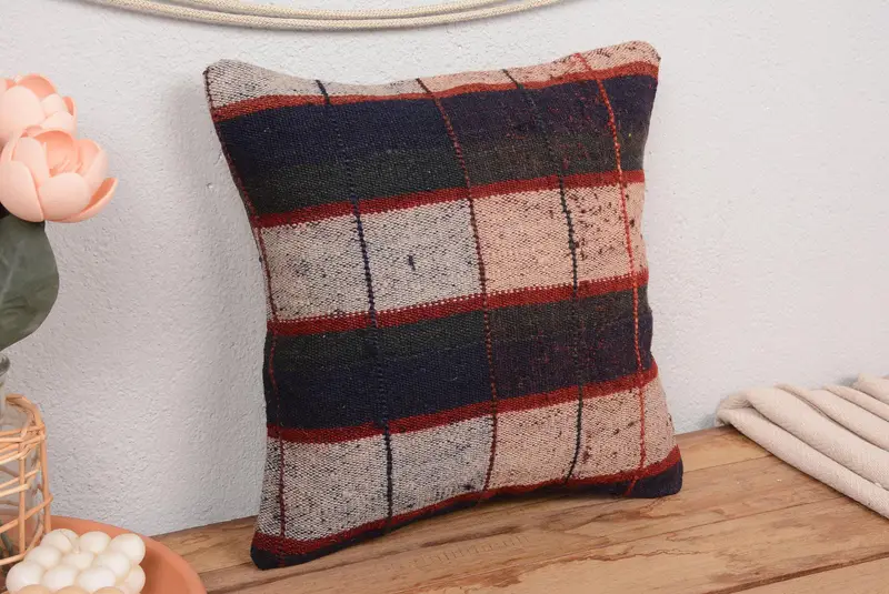 Almohada de tiro Kilim a rayas beige y marrón, cojín bordado