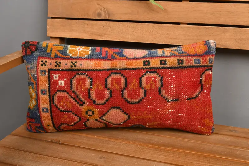Almohada de tiro floral rojo y bronce, cojín de lino hecho a mano de 10x20
