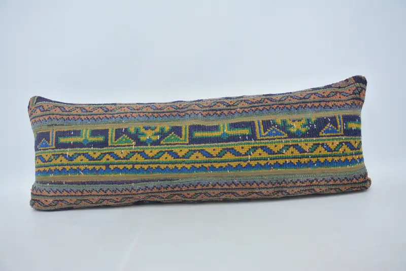 Almohada de lanzamiento floral azul y naranja hecha a mano, decoración vintage versátil