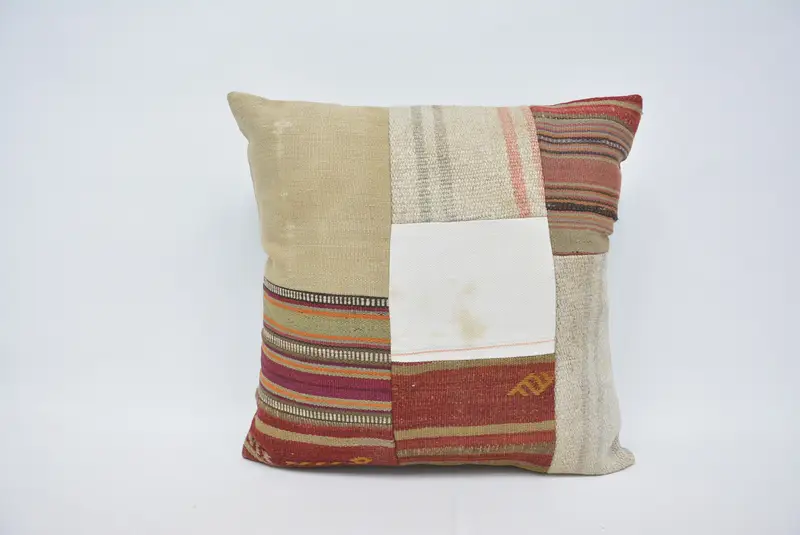 Cojín a rayas hecho a mano, almohada de lanzamiento de cáñamo marrón 24x24