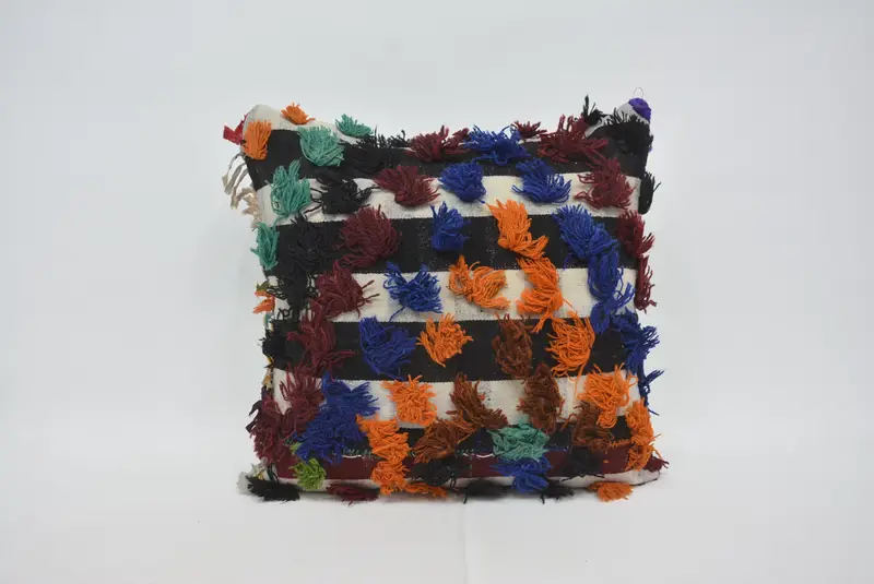 Almohada bordada de cáñamo y lana hecha a mano 24x24, almohada de lanzamiento vintage