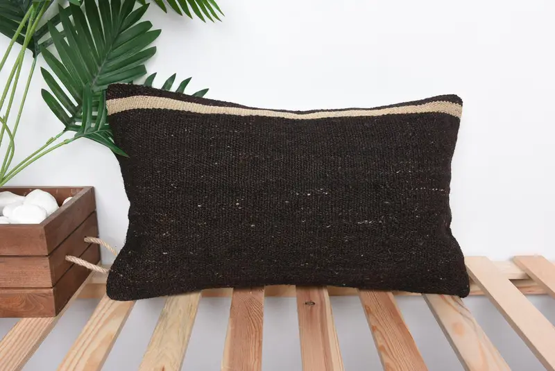 Almohada de tiro a rayas marrón y beige, cojín hecho a mano de 12x20